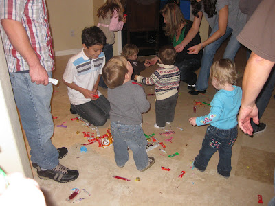 Once the candy made it's way out (with a little adult help) the kids ran in and what did our son grab...